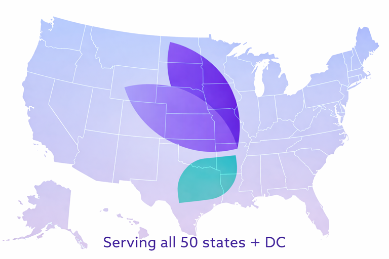 Lavender Sky Health proudly serves patients in all 50 US states, including Washington, DC. Please note that some pharmacies are unable to ship certain medications to some states, so be sure to review the tables below to see which pharmacies and medications are available in your state.